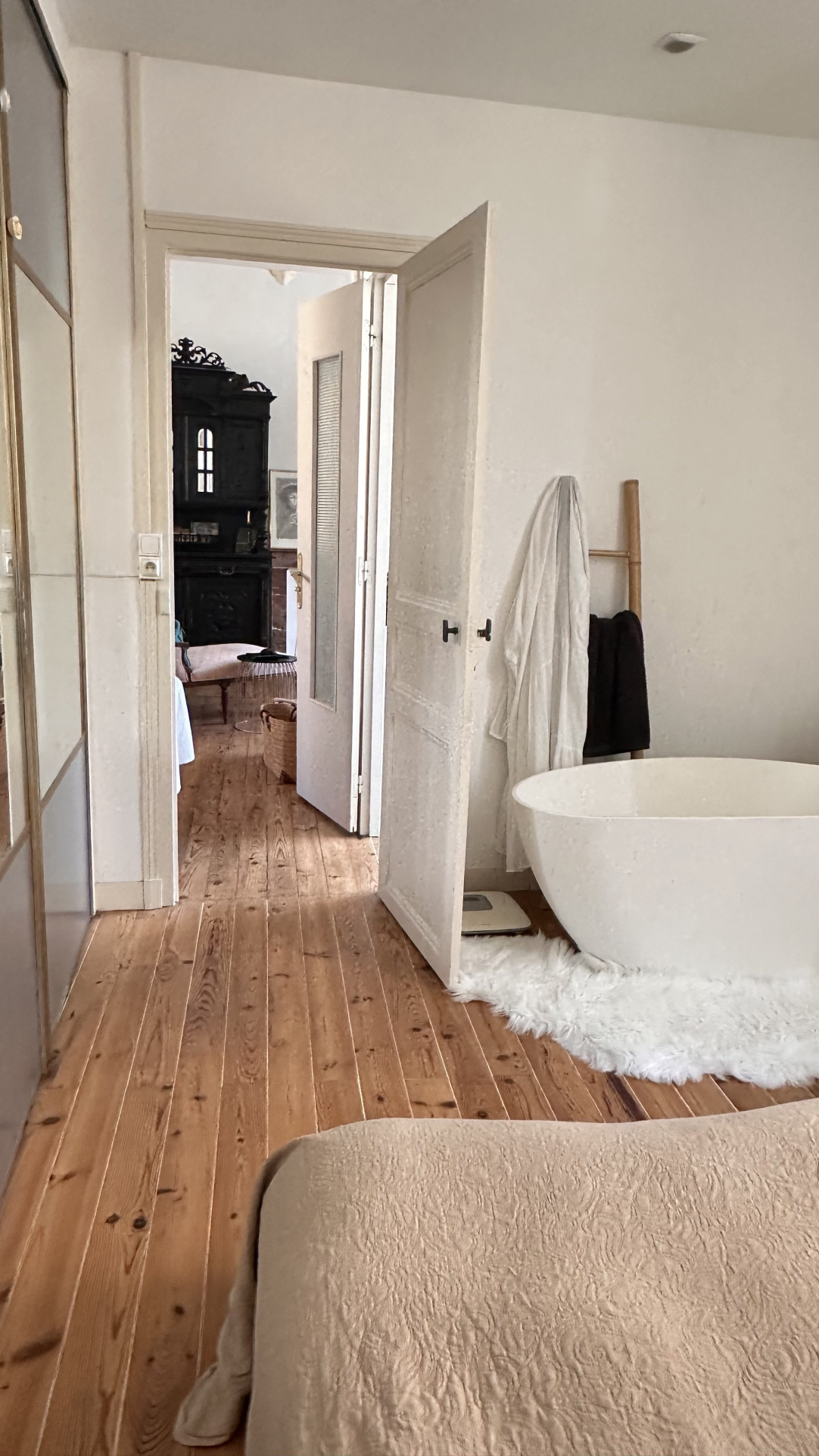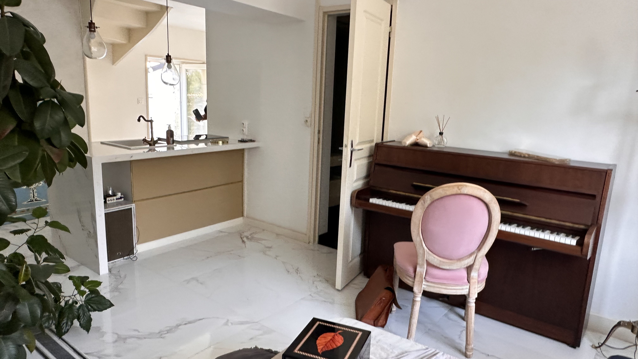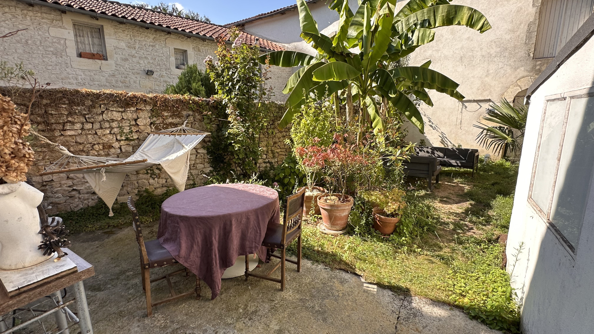 on oscille entre appartement et maison , bien que son petit jardin et sa dépendance au fond nous rappelle que nous sommes bien dans une maison.