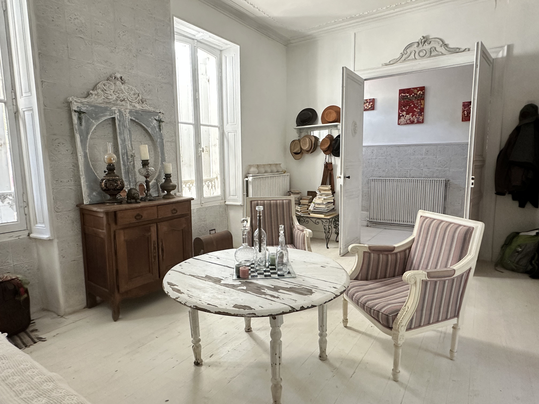 Cette maison coeur de ville nous a " tapé dans l'oeil!" ! Murs blanchis à la chaux, planchers peints, carreaux de ciments ... A quelques pas du marché, des commerces et des services, cette jolie maison n'attend que vous pour terminer sa rénovation.