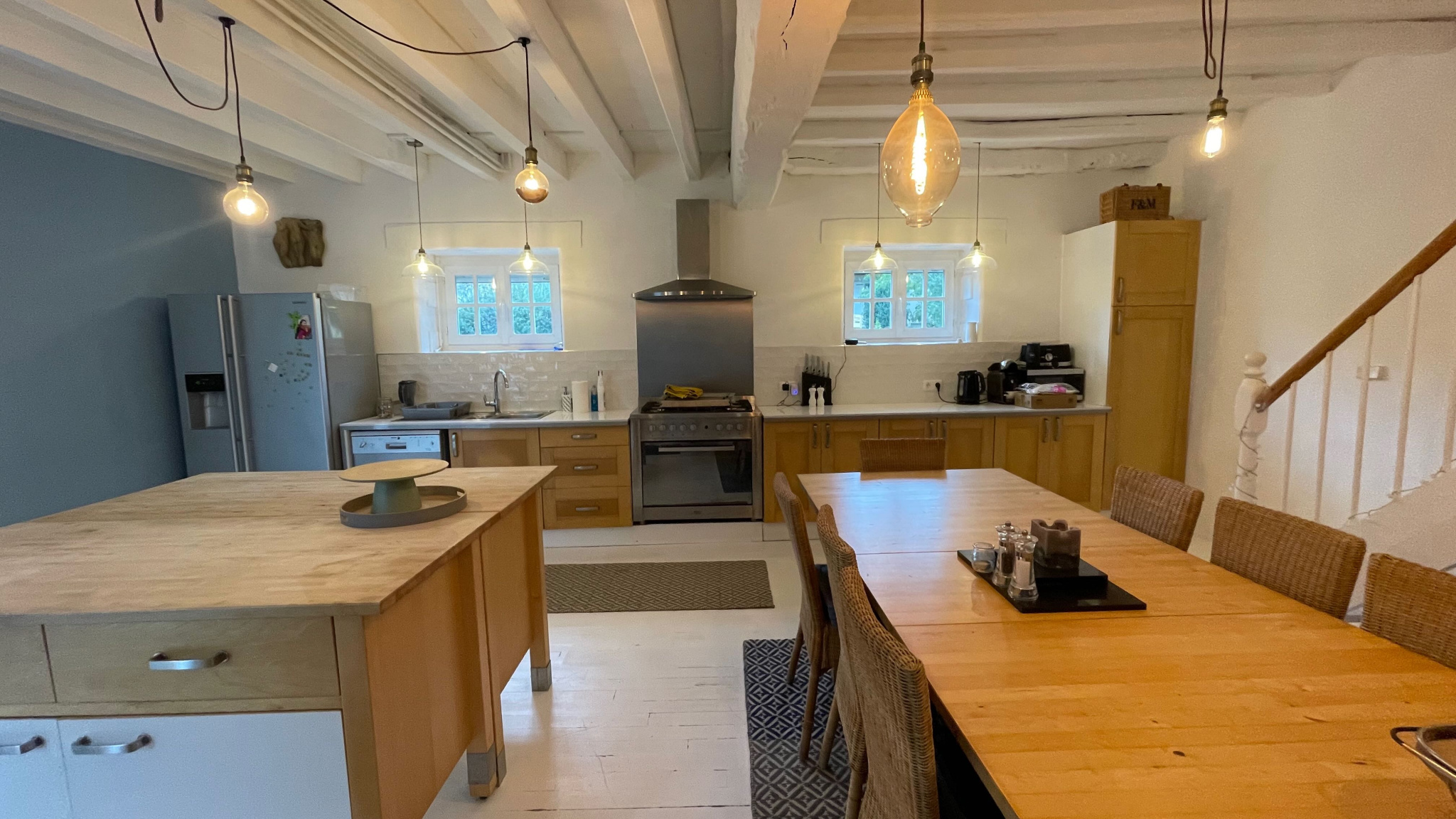 La maison de maître comprend au rez-de-chaussée une grande cuisine/salle à manger, une buanderie, des toilettes, deux salons et un bureau (ou une chambre). À l'étage, on trouve quatre chambres et deux salles de bains avec toilettes.